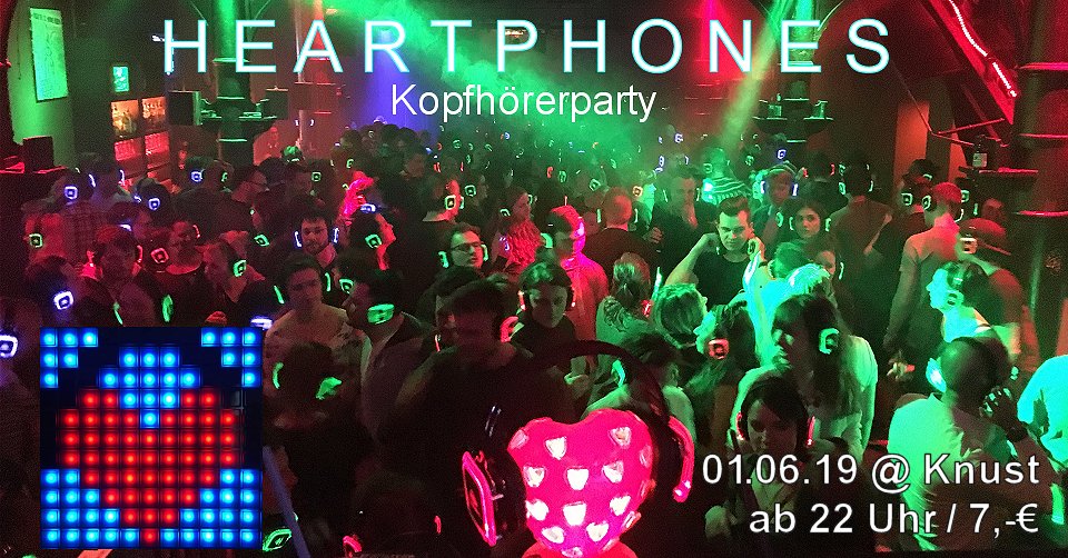 Und wieder haben wir einige schöne Parties hinter uns gebracht und schauen direkt nach vorn zur nächsten: Die große Heartphones steigt am 1. Juni in unserer Homebase, dem Knust. Beginn ist wieder um 22 Uhr bei schmalen 7,-€ Eintritt. Hier die Facebook-VA.