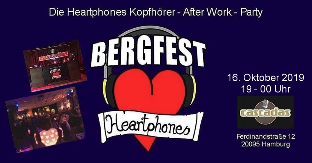 03.04. : Cascadas : Herzensprojekt „Heartphones Bergfest“ aka After Work Party. Wir starten im Cascadas, mitten in der Hamburger Innenstadt unsere Feierabend-Sause. 5,-€ Eintritt, 19:00 – Mitternacht. fb hier.